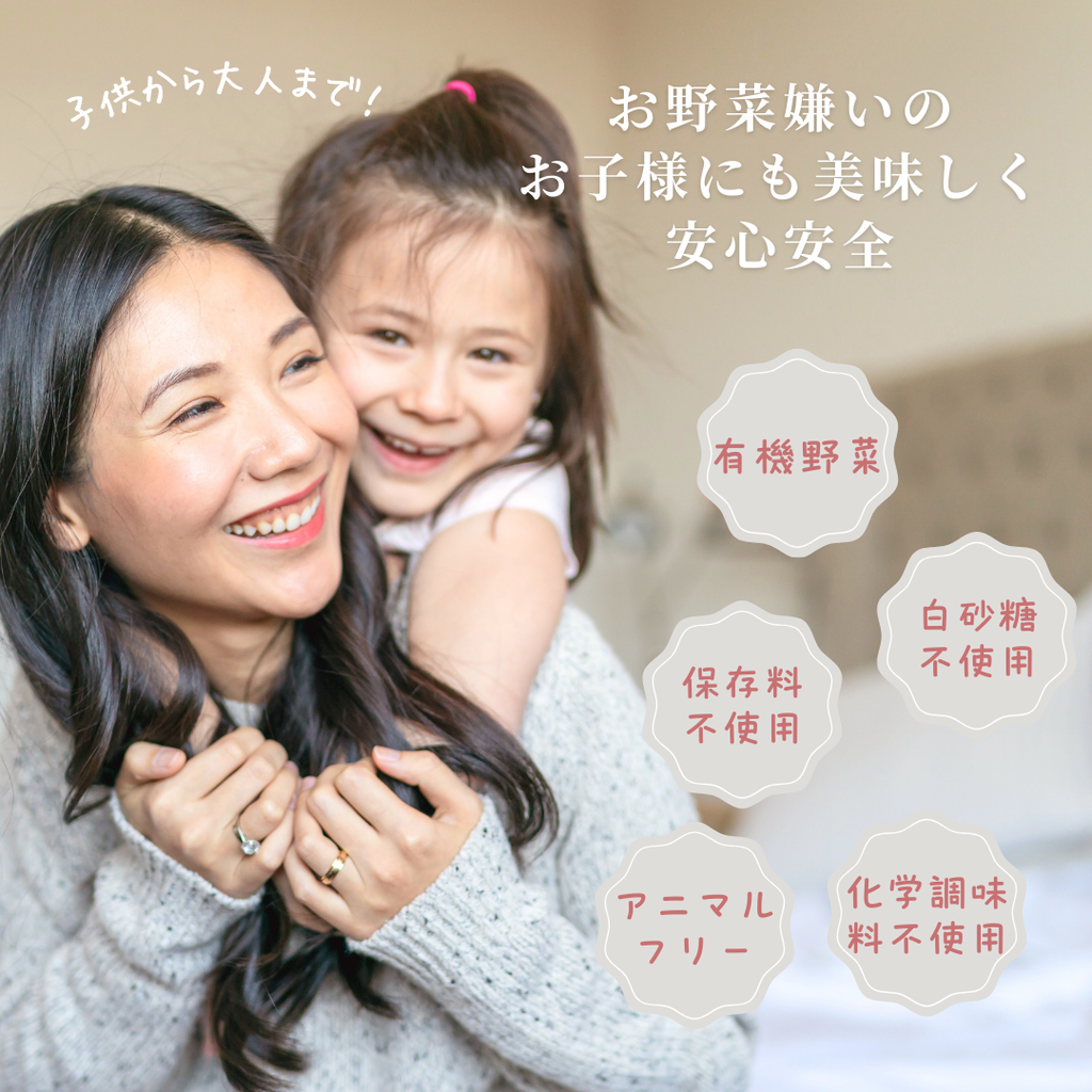 私たちの製品は、健康を第一に考える人たちのために、安全で高品質なオーガニック野菜を使用して作られています。