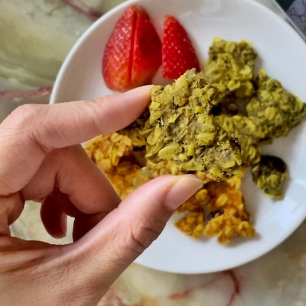 しっかり野菜を使っていますが、グラノーラに近い感覚で味の調整できます。ゴロっとしたグラノーラになっているので、そのままおやつのように食べてもよし。ヨーグルトなどに振りかけてもよし。お好みの素材やフルーツを足しても美味しい。栄養豊富ですので、余すことなく最後までお楽しみください。